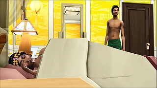 Indian step mom shares her bed with her son after he visited during the night because he had a nightmare and went to bed with her - desi mom and son