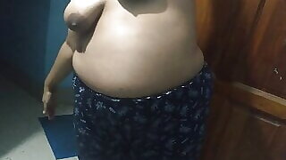 Indian bhabhi naked and exercising in the morning, big breasts, sexy figure.