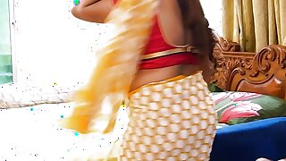 Wife cheats on husband with his friend on the floor with traditional saree hindi audio