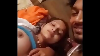 Indian husband pressing boobs of his newly married wife.